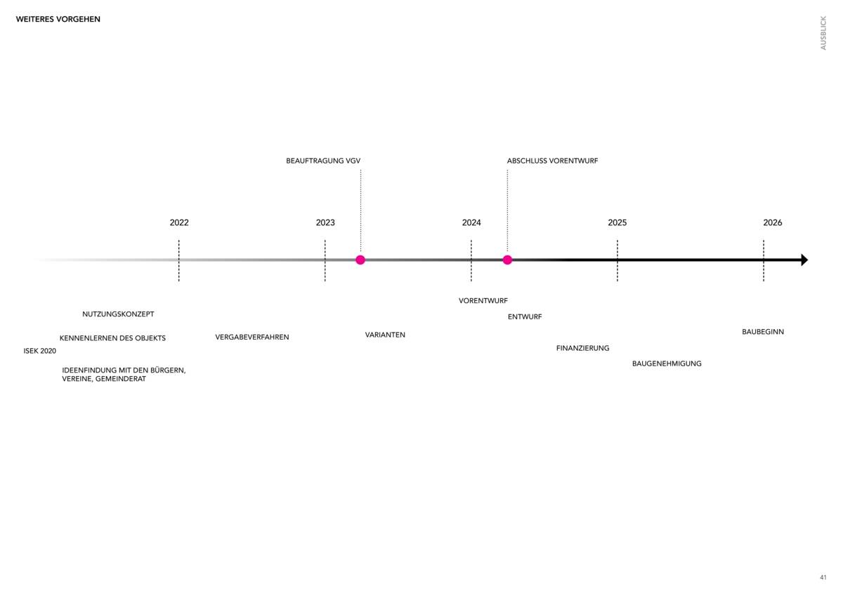 Im Zuge eines VGV Verfahrens im Jahre 2023 erhielt das ortsansässige Architektenbüro Staib durch sein wirtschaftliches Angebot den Zuschlag für die Ausarbeitung eines Konzepts plus Vorentwurf zur neuen Nutzung des Gebäudes.