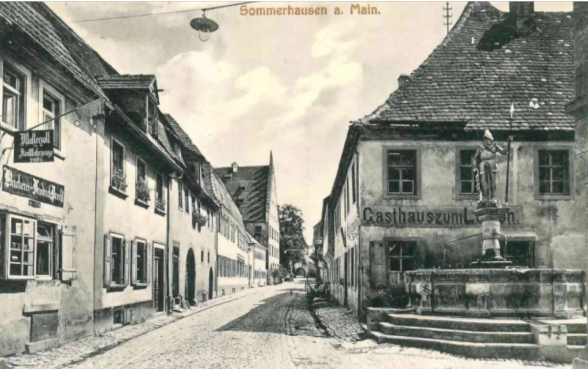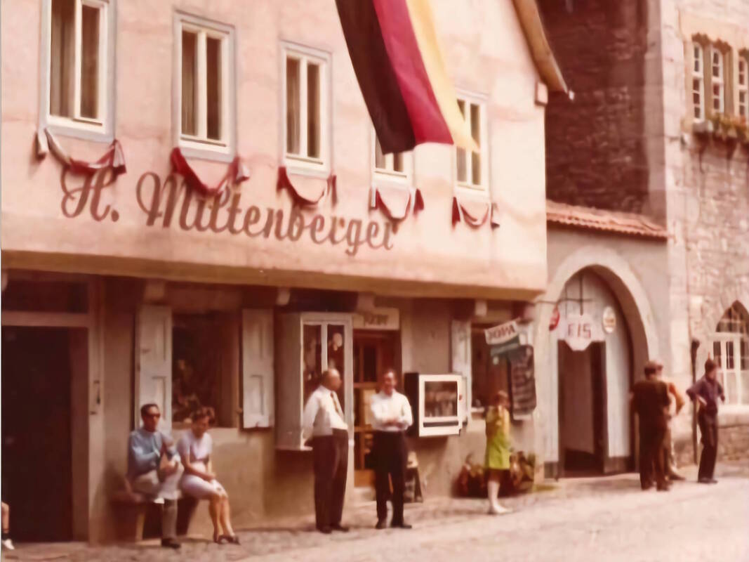 Der Kaufmann Heinrich Miltenberger (*19.07.1880 in Winterhausen) heiratet am 13. Januar 1907 Maria Siebenlist (*04.09.1881 in Winterhausen) in Winterhausen. Das junge Paar zieht noch im gleichen Jahr nach Sommerhausen in die Hauptstraße 13 in das stattliche Anwesen neben dem Rathaus. Am 2. Juni 1908 wird der Stammhalter mit Namen Hans Michael geboren. Fünf Jahre später kommt Tochter Magdalena am 2. April 1913 zur Welt.