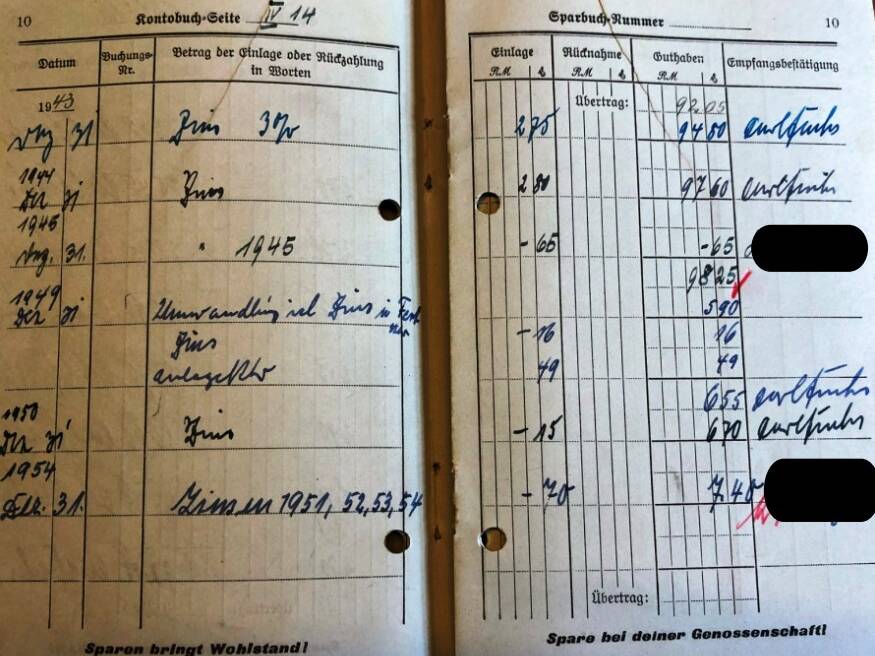 Sparbuch der Steinbrenner-Düllstiftung, Stand 1954. Foto: Irene Meeh