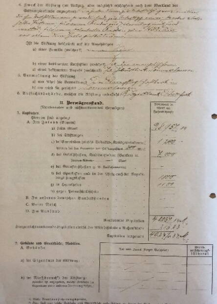 Genehmigung der Stiftung 13.1.1877. Gerichtsurteil 30.7.1877.