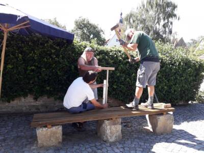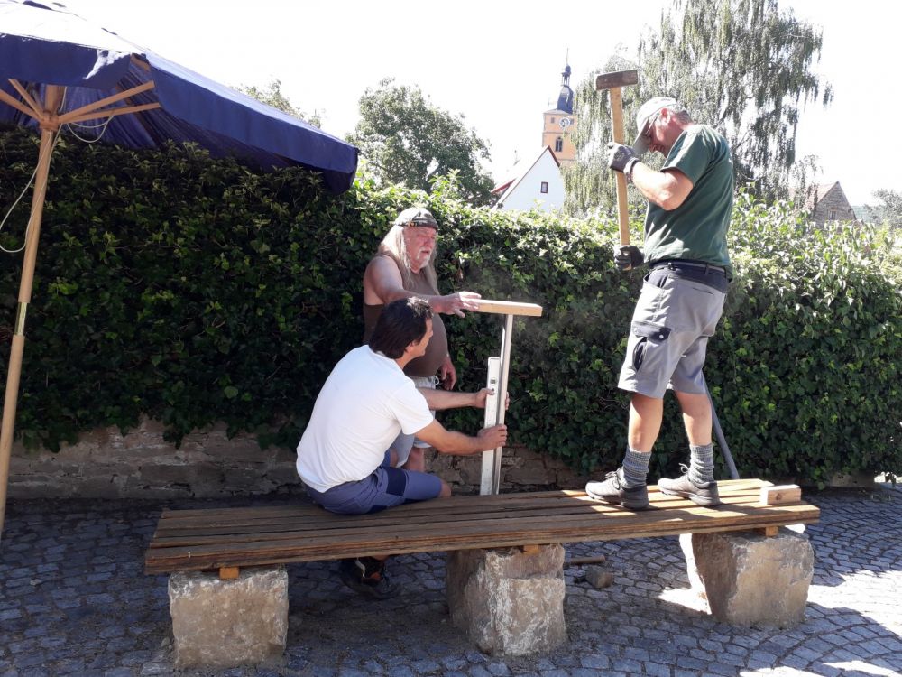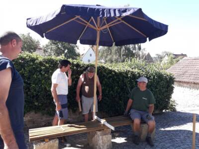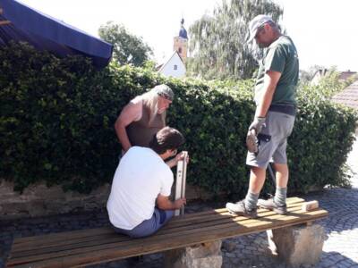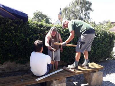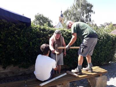 Im August 2019 haben Andreas Büttner, Heinrich Schwarz (Orrie) und Wilfried Wagner zwei Bänke an der Aussegnungshalle erstellt. Bisher gab es eigentlich keine Sitzgelegenheiten im Außenbereich für die Trauergäste am Friedhof.