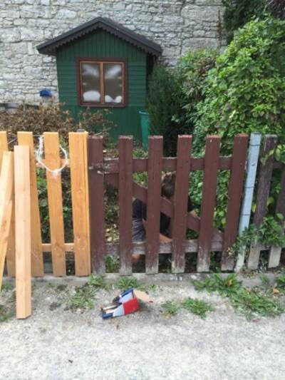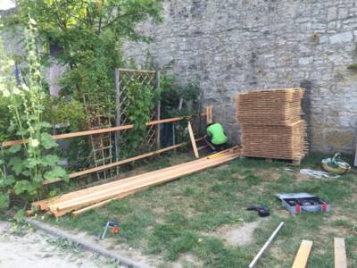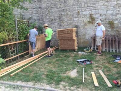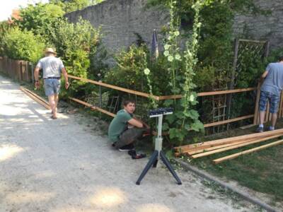 Alles ging Hand in Hand. Immerhin sind 300 m Zaun, 2.000 m Querlatten und 8.000 Schrauben verarbeitet worden.