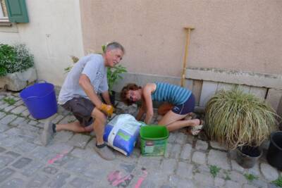 Wilfried Wagner hat außerdem den Stellplatz für den Abfallcontainer hergerichtet und gepflastert.