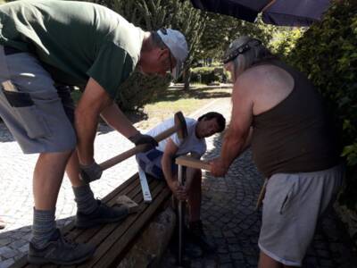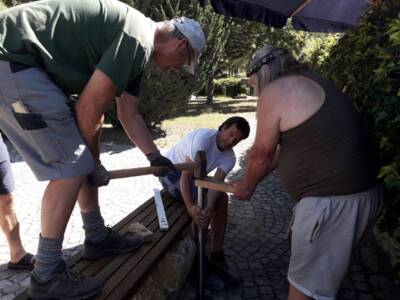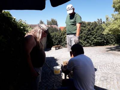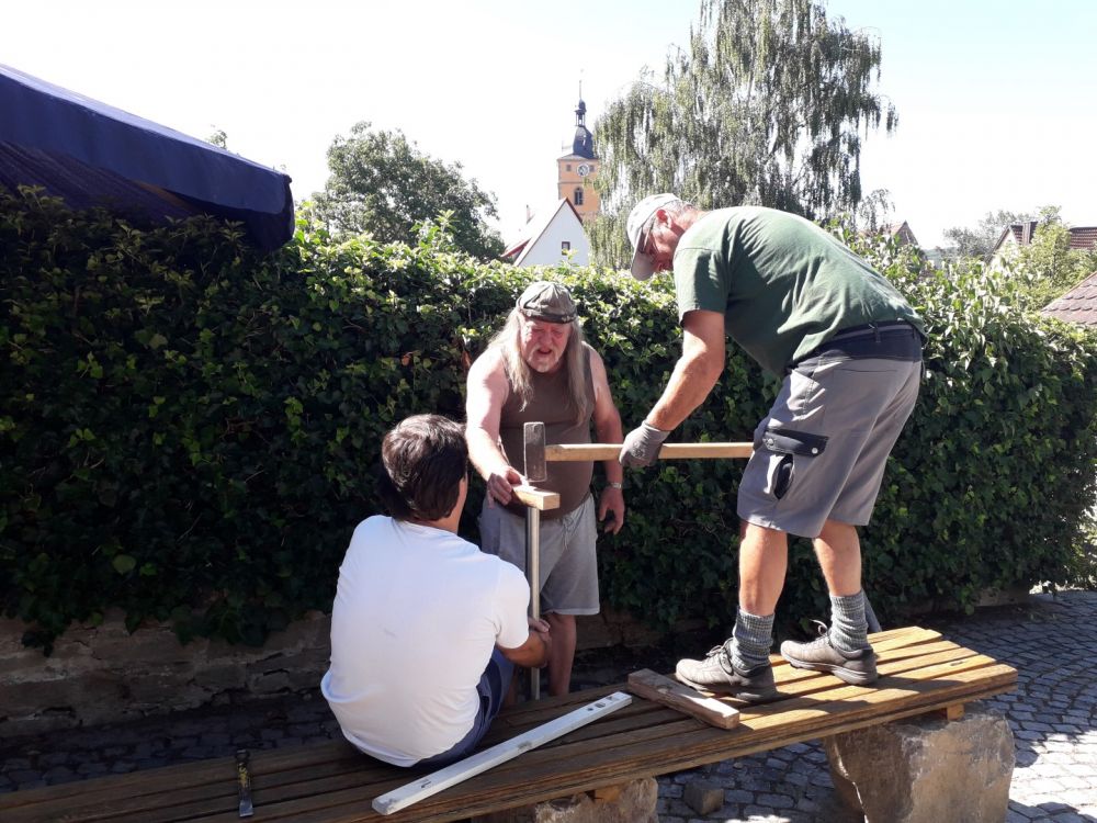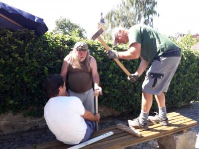 So haben Andreas Büttner, Jürgen Jerschel unserem "Banker" geholfen eine Bank zu bauen, auf der man neben den Beinen