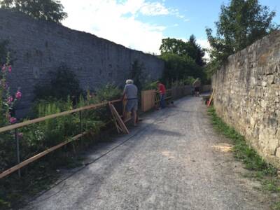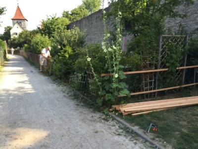 Elf freiwillige Helfer haben sich an 12 Wochenenden zusammengefunden, um den Gartenzaun im Grabengarten zu erneuern. Unter der Leitung von Wilfried Wagner, der auch Initiator der Aktion war, haben sich Bürger im Alter von 12 Jahren bis über 70 Jahre versammelt. Der marode und in die Jahre gekommene Holzzaun wurde Stück für Stück entfernt und der neue Zaun erstellt, einschließlich der Gartentüre.