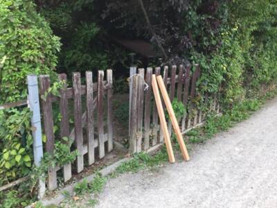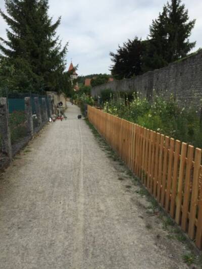 Der akkurat erstellte Zaun stellt sich nun in seiner Schönheit vor, prägt das Ortsbild entlang der Ortsmauer und ist eine Barriere, die das Eigentum der Gartenbesitzer schützen soll.