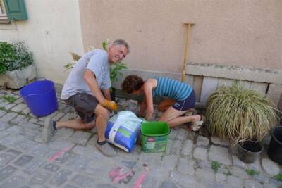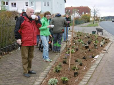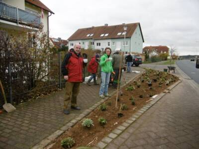 „Unser Dorf soll bunter und schöner werden“ – das haben sich die Mitglieder des Obst-, Wein- und Gartenbauvereins auf die Fahne geschrieben. Die erste Pflanzaktion war in der Katharinengasse, Am Berghof und Rathausgasse. Hier pflanzten die tüchtigen Helfer Stauden, Büsche und Rosen.