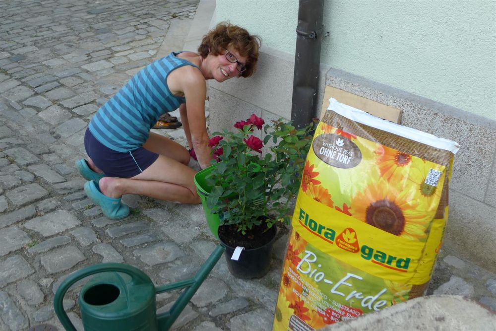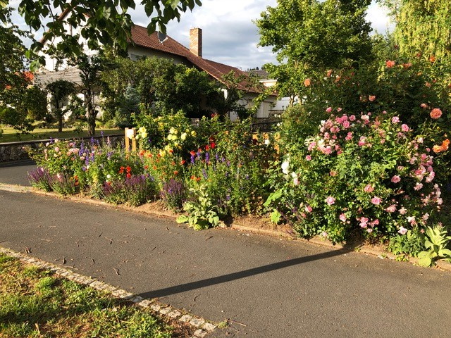 Daraufhin hat sie den damaligen Bürgermeister Karl Steinmann gefragt, ob sie diesen Bereich mit Blumen bepflanzen und pflegen darf. Er hat es wohl gerne genehmigt und wir alle dürfen es seit dem genießen.