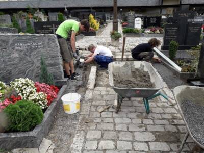 An zwei Samstagen machten sie den Haupteingang zum Friedhof barrierefrei. Viele Bürgerinnen und Bürger begrüßten diese Aktion, denn mit Rollator oder Elektroeinsitzer war die Stufe schwer zu überwinden.