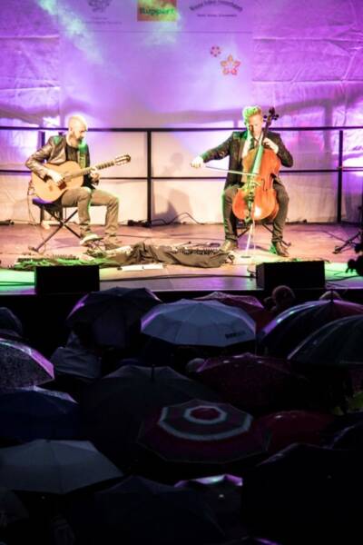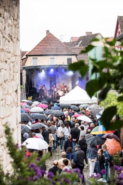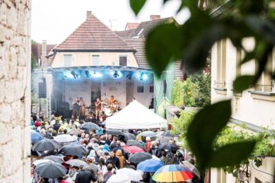 Am 17. August durfte Sommerhausen einen rundum gelungenen Abend erleben! Das neue Sommerhausen-Festival mit insgesamt 27 Konzerten an 6 verschiedenen Plätzen zog 2500 Gäste aus nah und fern in den Sommerhäuser Altort, der sich nicht nur mit vielfältiger Musik belebte, von schmissig bis filigran, sondern auch mit kulinarischen Düften und mit begeisterten Menschen, die sich bestens unterhalten wussten. Das historisch-idyllische Sommerhausen zeigte sich von einer wunderbar stimmungsvollen Seite. Und sogar der Regen, der verständlicherweise den schönen Abend auch nicht ganz verpassen wollte, fiel rücksichtsvoll und verzog sich schließlich ganz.
