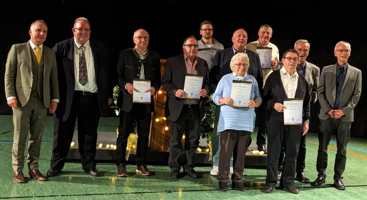 1. Bürgermeister Wilfried Saak, 2. Vorsitzender Bernd Geisendörfer, Martin Furkel (70 Jahre), Günther Schönig (50 Jahre),