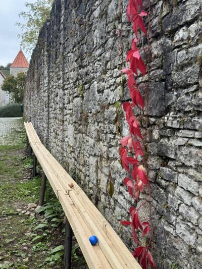 Die Kugeln für die Kugelbahnen gibt es für €2 am Automaten, der an der Kreuzung Rathausgasse und Ernst-Gebhardt-Ring steht. Bitte denkt an eine €2-Münze.