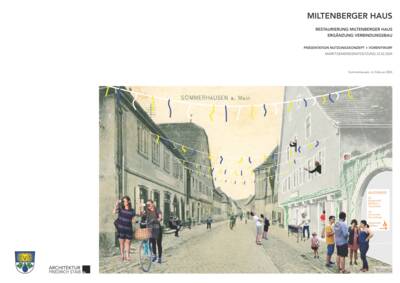 Schon bei Erwerb des Gebäudeensembles im Jahr 2018 gab es seitens des Marktes Sommerhausen Überlegungen zur Umnutzung des Gebäudes. Erste Lösungsvorschläge wurden durch ein Semesterprojekt der Studenten der FHSW vom 07.07.2021 erarbeitet, um das Miltenbergerhaus im alten Glanz erstrahlen und die Nutzung wieder aufleben zu lassen.