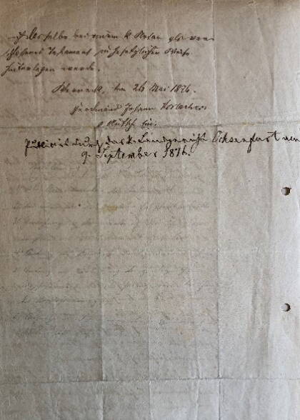 Im Alter von 67 Jahren verfasst Johann Ferdinand am 26. Mai 1876 sein Testament.