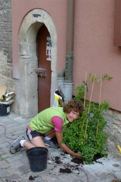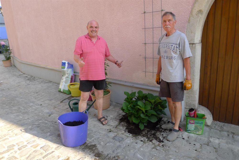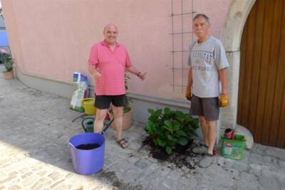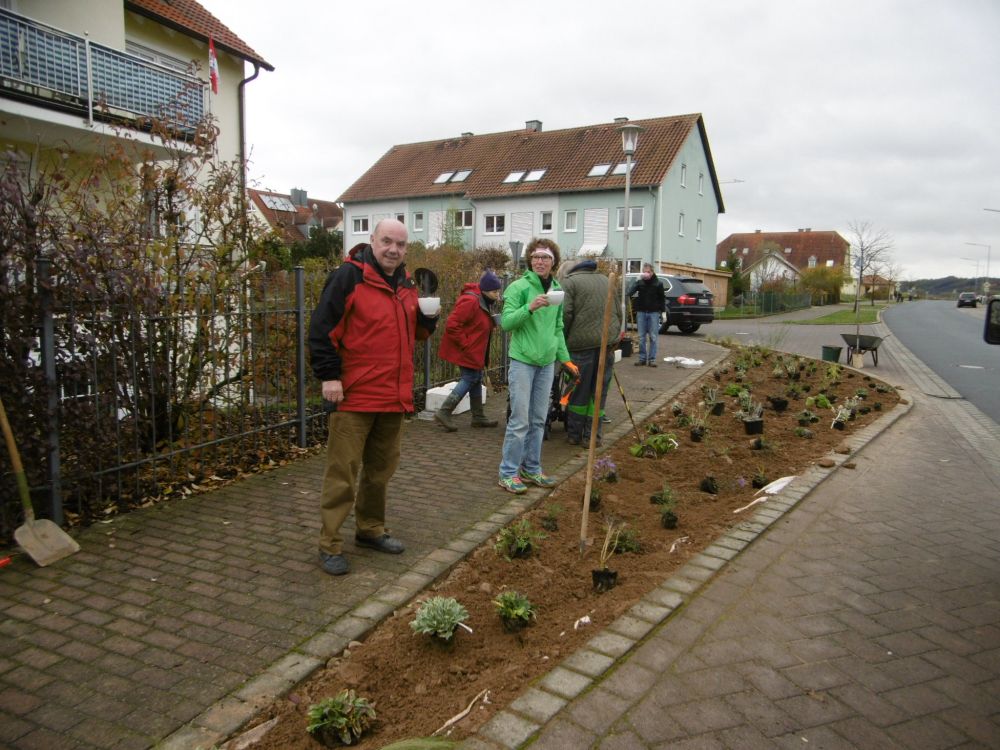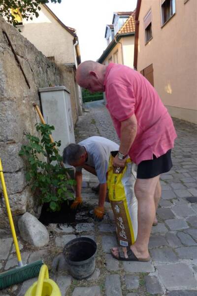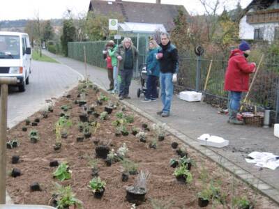 „Unser Dorf soll bunter und schöner werden“ – das haben sich die Mitglieder des Obst-, Wein- und Gartenbauvereins auf die Fahne geschrieben. Die erste Pflanzaktion war in der Katharinengasse, Am Berghof und Rathausgasse. Hier pflanzten die tüchtigen Helfer Stauden, Büsche und Rosen.