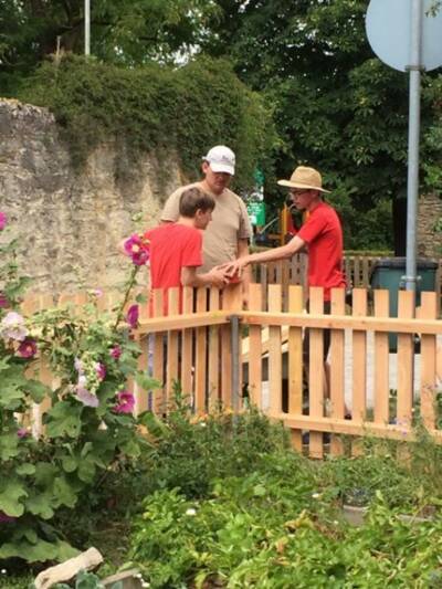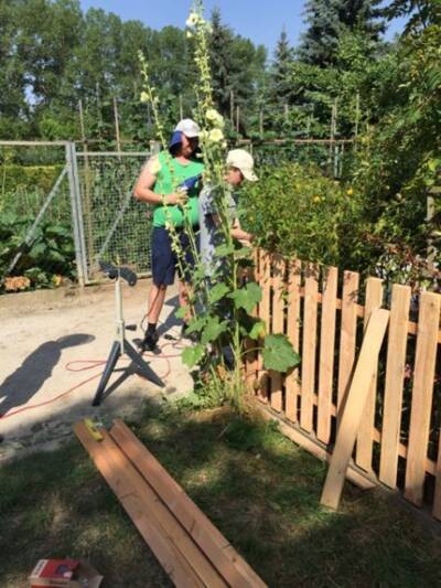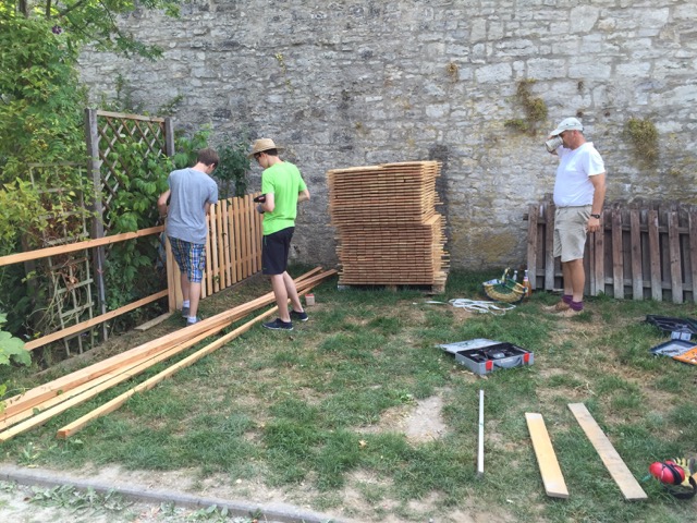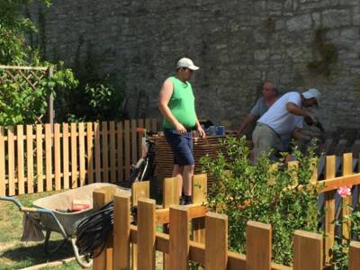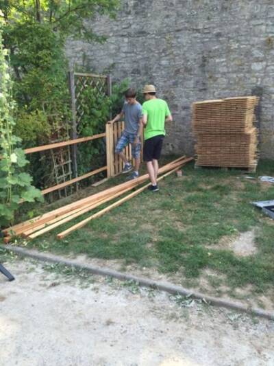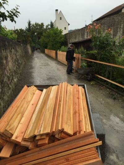 Alles ging Hand in Hand. Immerhin sind 300 m Zaun, 2.000 m Querlatten und 8.000 Schrauben verarbeitet worden.