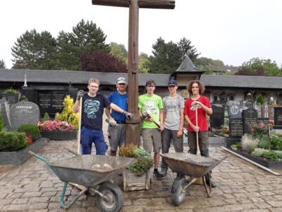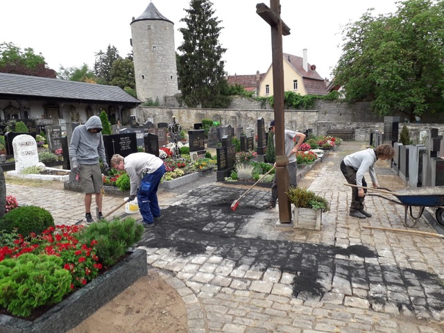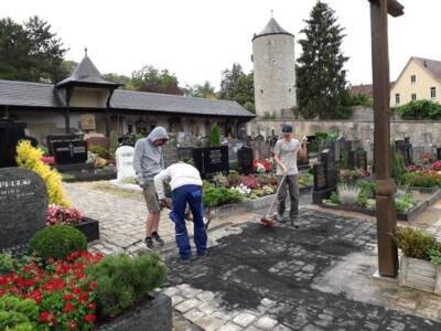 An zwei Samstagen machten sie den Haupteingang zum Friedhof barrierefrei. Viele Bürgerinnen und Bürger begrüßten diese Aktion, denn mit Rollator oder Elektroeinsitzer war die Stufe schwer zu überwinden.