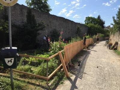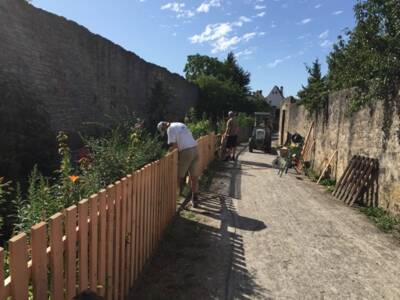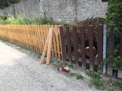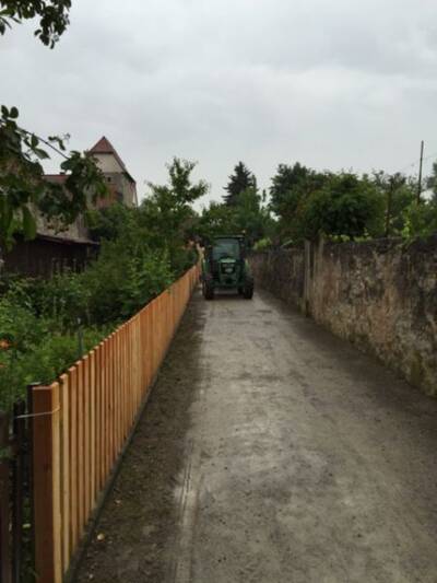 Der akkurat erstellte Zaun stellt sich nun in seiner Schönheit vor, prägt das Ortsbild entlang der Ortsmauer und ist eine Barriere, die das Eigentum der Gartenbesitzer schützen soll.