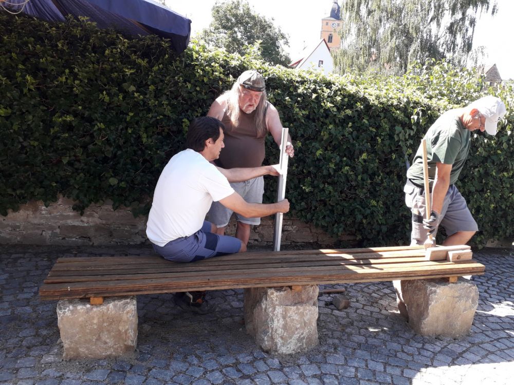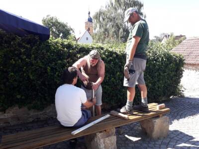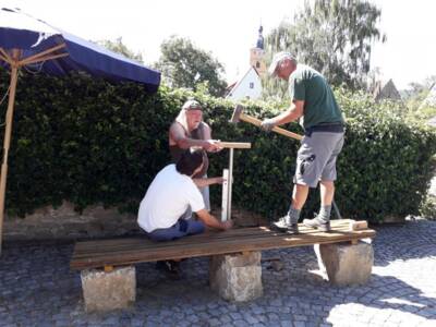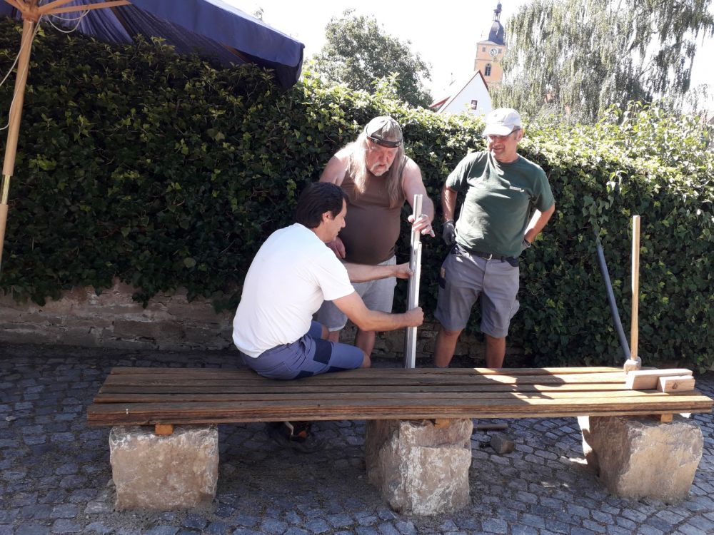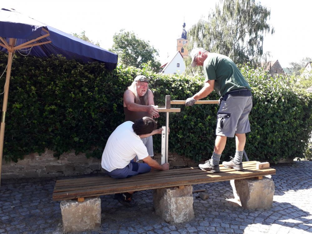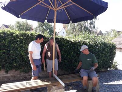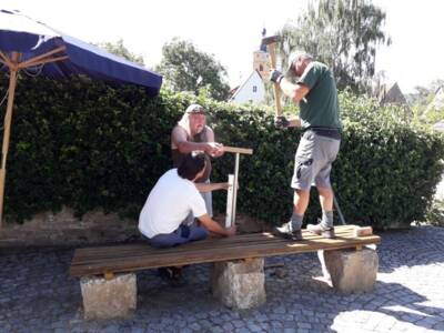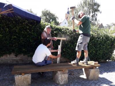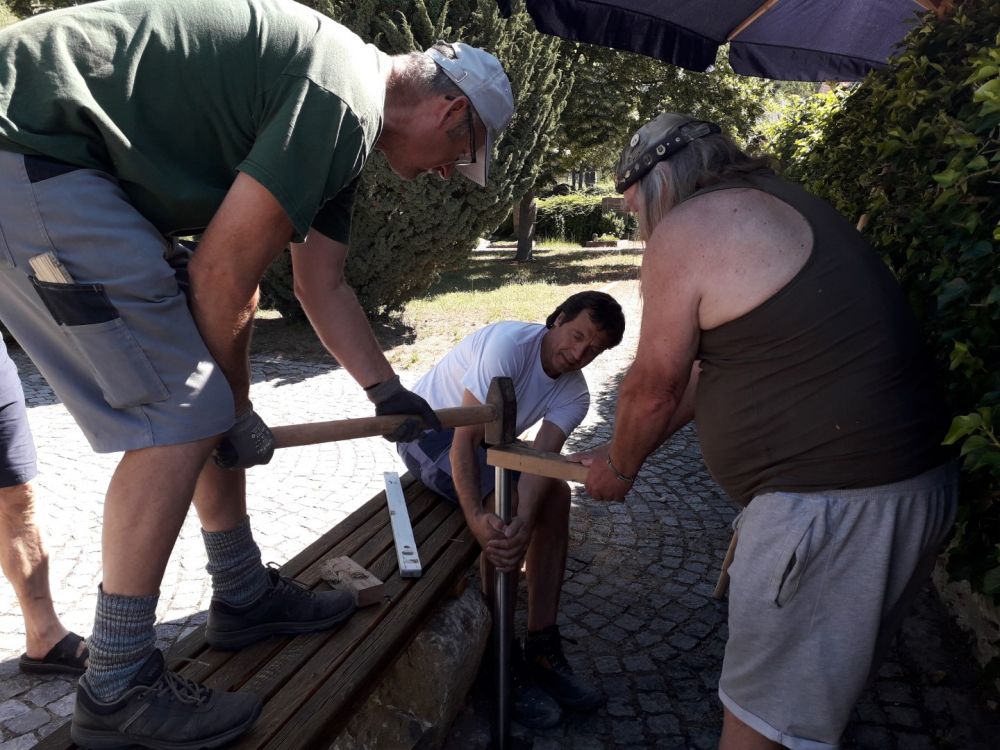Im August 2019 haben Andreas Büttner, Heinrich Schwarz (Orrie) und Wilfried Wagner zwei Bänke an der Aussegnungshalle erstellt. Bisher gab es eigentlich keine Sitzgelegenheiten im Außenbereich für die Trauergäste am Friedhof.