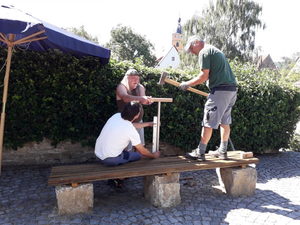 Wilfried Wagner hat schon viele Bänke für Sommerhausen gebaut und aufgestellt. Mittlerweile hat er auch Mitstreiter, denen es auch immer wieder Spaß macht, sich ehrenamtlich für die Verschönerung unserer Gemeinde einzusetzen.