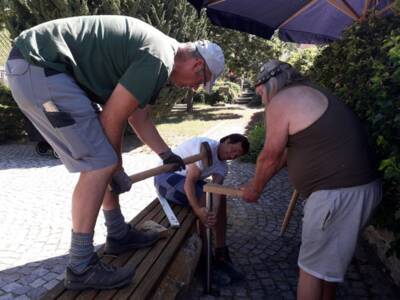 So haben Andreas Büttner, Jürgen Jerschel unserem "Banker" geholfen eine Bank zu bauen, auf der man neben den Beinen