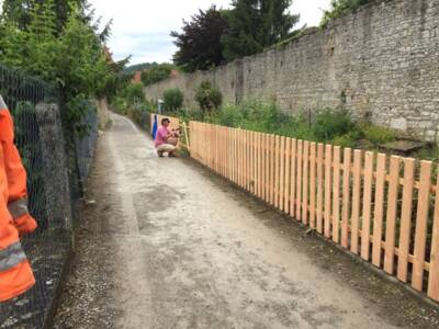 Elf freiwillige Helfer haben sich an 12 Wochenenden zusammengefunden, um den Gartenzaun im Grabengarten zu erneuern. Unter der Leitung von Wilfried Wagner, der auch Initiator der Aktion war, haben sich Bürger im Alter von 12 Jahren bis über 70 Jahre versammelt. Der marode und in die Jahre gekommene Holzzaun wurde Stück für Stück entfernt und der neue Zaun erstellt, einschließlich der Gartentüre.