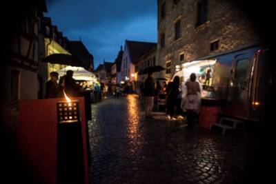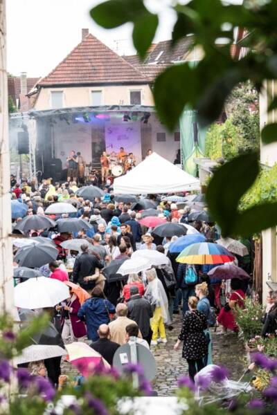 Am 17. August durfte Sommerhausen einen rundum gelungenen Abend erleben! Das neue Sommerhausen-Festival mit insgesamt 27 Konzerten an 6 verschiedenen Plätzen zog 2500 Gäste aus nah und fern in den Sommerhäuser Altort, der sich nicht nur mit vielfältiger Musik belebte, von schmissig bis filigran, sondern auch mit kulinarischen Düften und mit begeisterten Menschen, die sich bestens unterhalten wussten. Das historisch-idyllische Sommerhausen zeigte sich von einer wunderbar stimmungsvollen Seite. Und sogar der Regen, der verständlicherweise den schönen Abend auch nicht ganz verpassen wollte, fiel rücksichtsvoll und verzog sich schließlich ganz.
