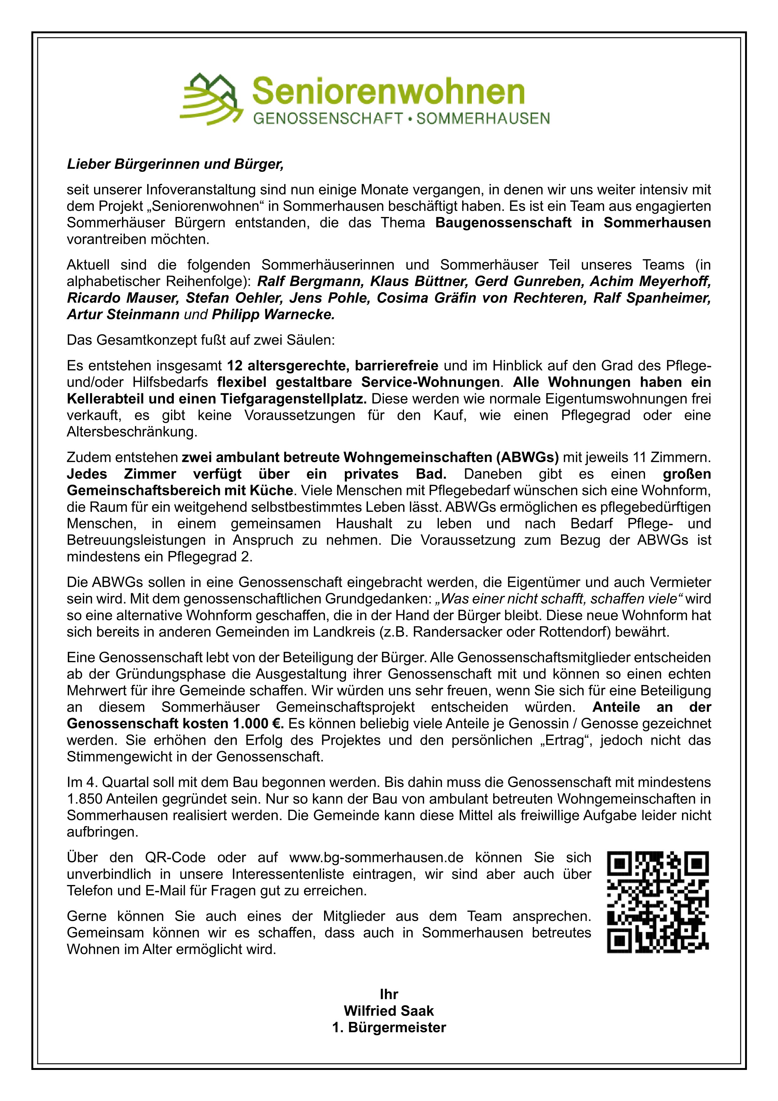 Gedanken des 1. Bürgermeisters Wilfried Saak