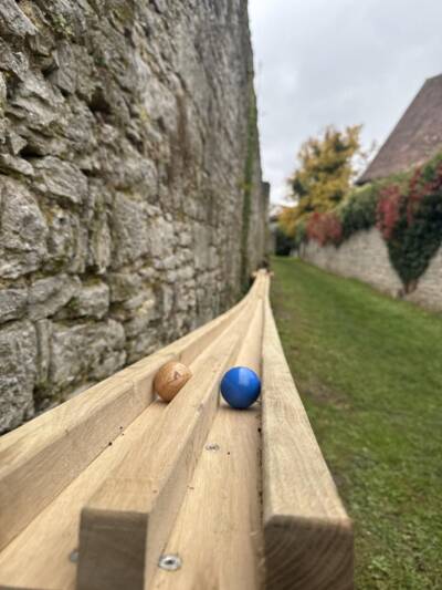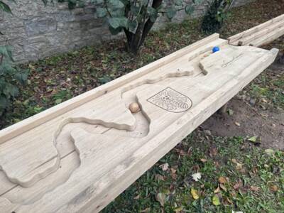 Die Kugeln für die Kugelbahnen gibt es für €2 am Automaten, der an der Kreuzung Rathausgasse und Ernst-Gebhardt-Ring steht. Bitte denkt an eine €2-Münze.